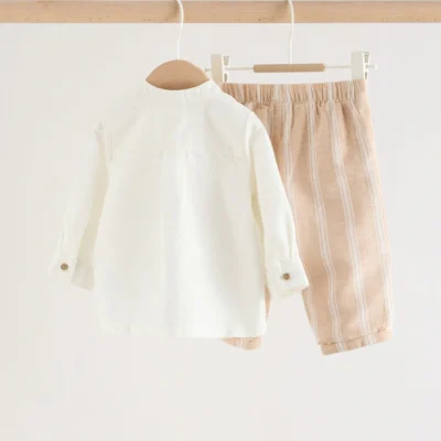 White/Orange Stripe Shirt and Trousers Baby Set (0mths-3yrs)