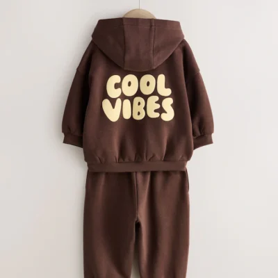 Chocolate Brown Cool Vibes Printed Hoodie and Joggers Set (3mths-7yrs)
