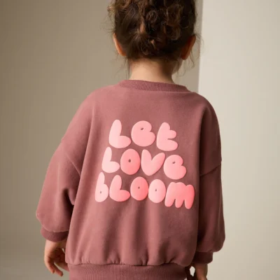 Mocha Brown Let Love Bloom Crew Neck Sweatshirt (3mths-7yrs)