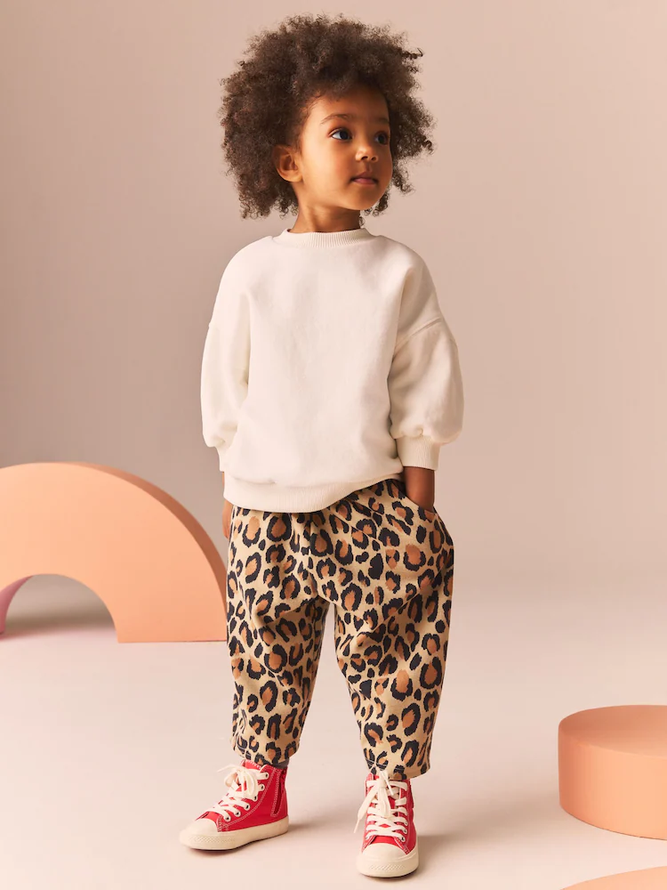 Animal Leopard Print Textured Barrel Leg Trousers (3mths-7yrs)