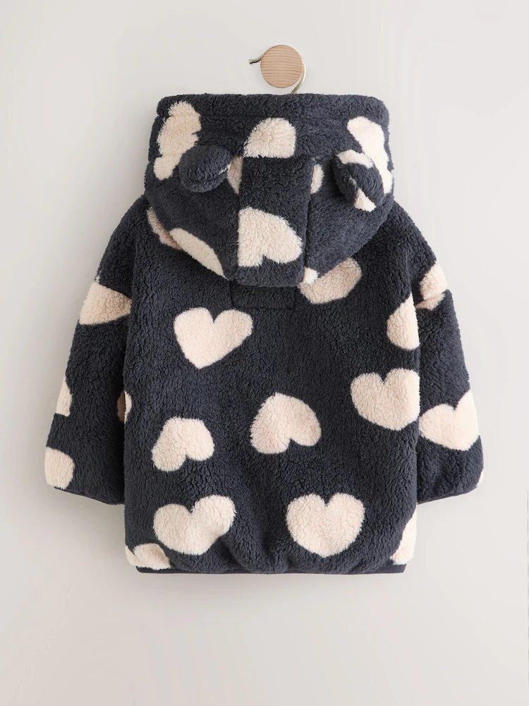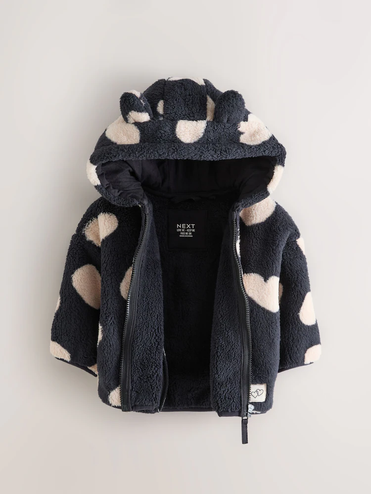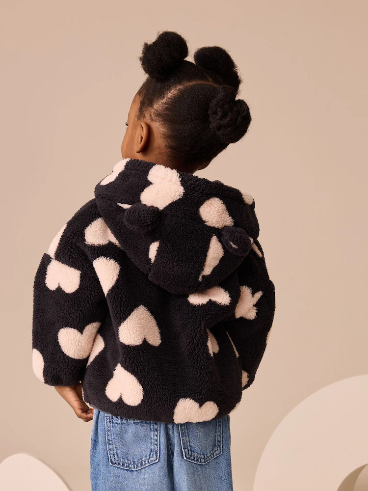 Black Heart Print Zip Through Fleece (3mths-7yrs)