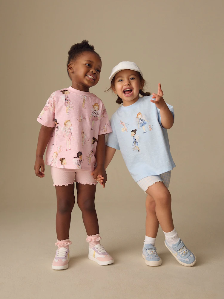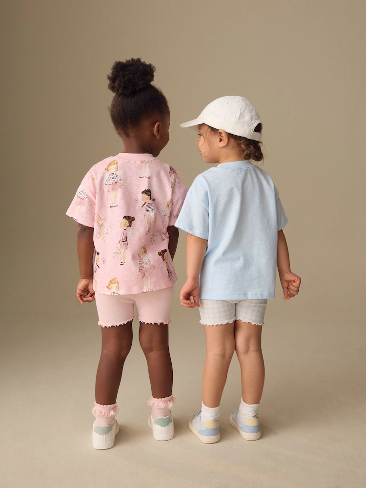 Introduce versatile and fun options to the casual wardrobe with this vibrant Top & Cycle Shorts Set 2 Pack. This practical 4 piece set pack includes two coordinating Short sleeve t-shirts featuring playful graphics, and two pairs of patterned Cycle shorts. The set includes a modern Graffiti design print, making it the ideal ensemble for summer adventures.