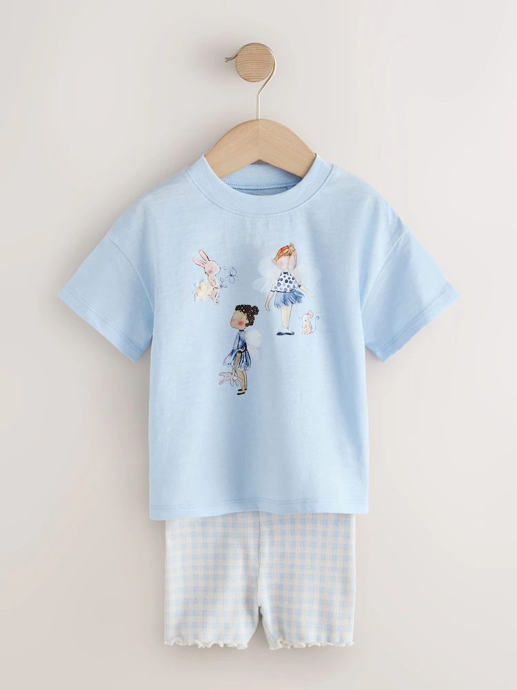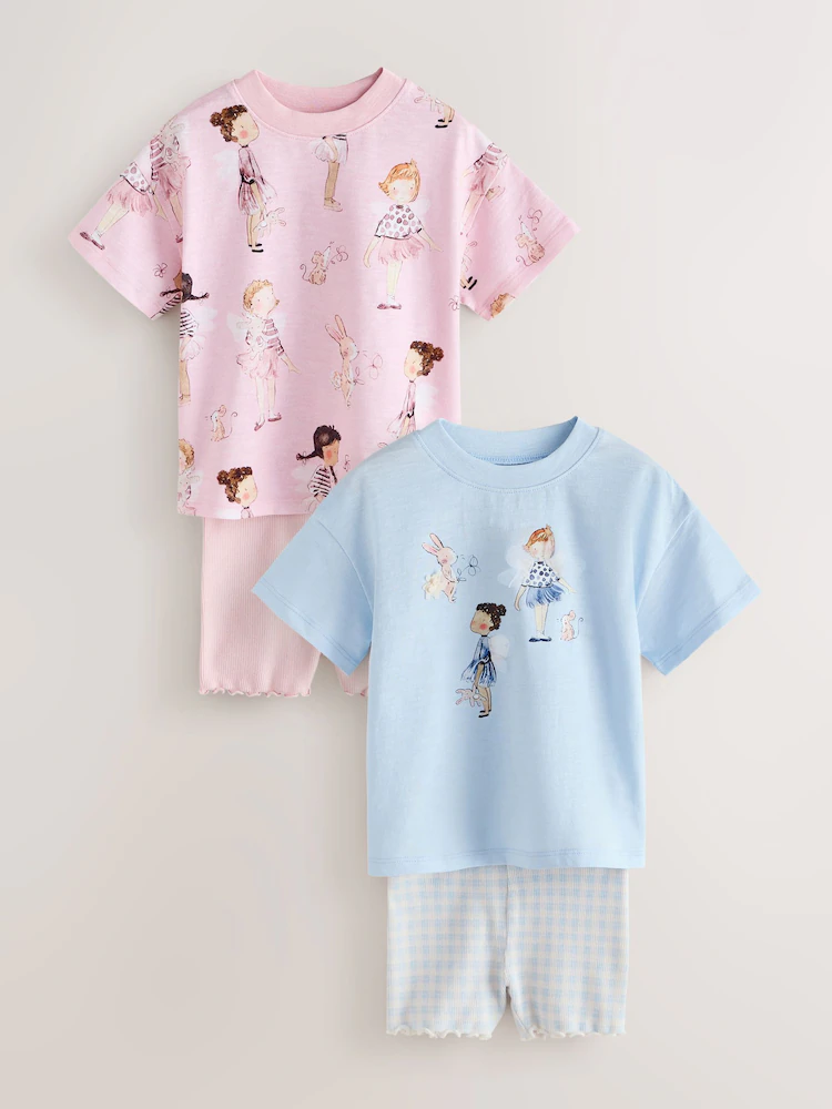 Blue/Pink Top & Cycle Shorts Set 2 Pack (3mths-7yrs)