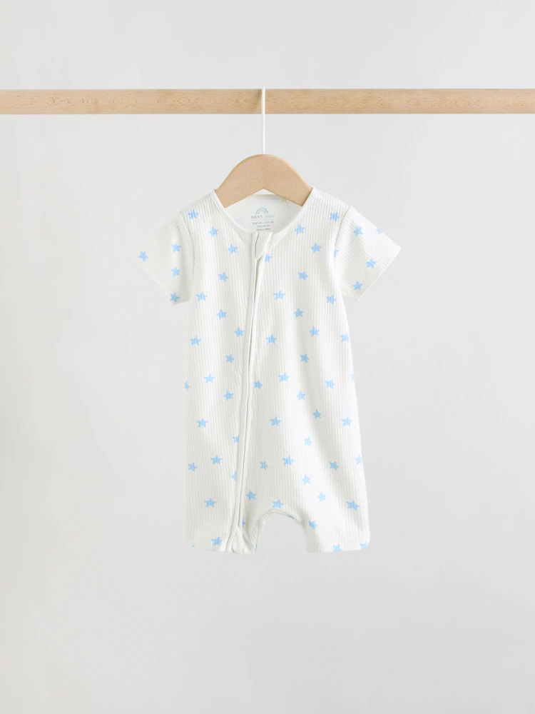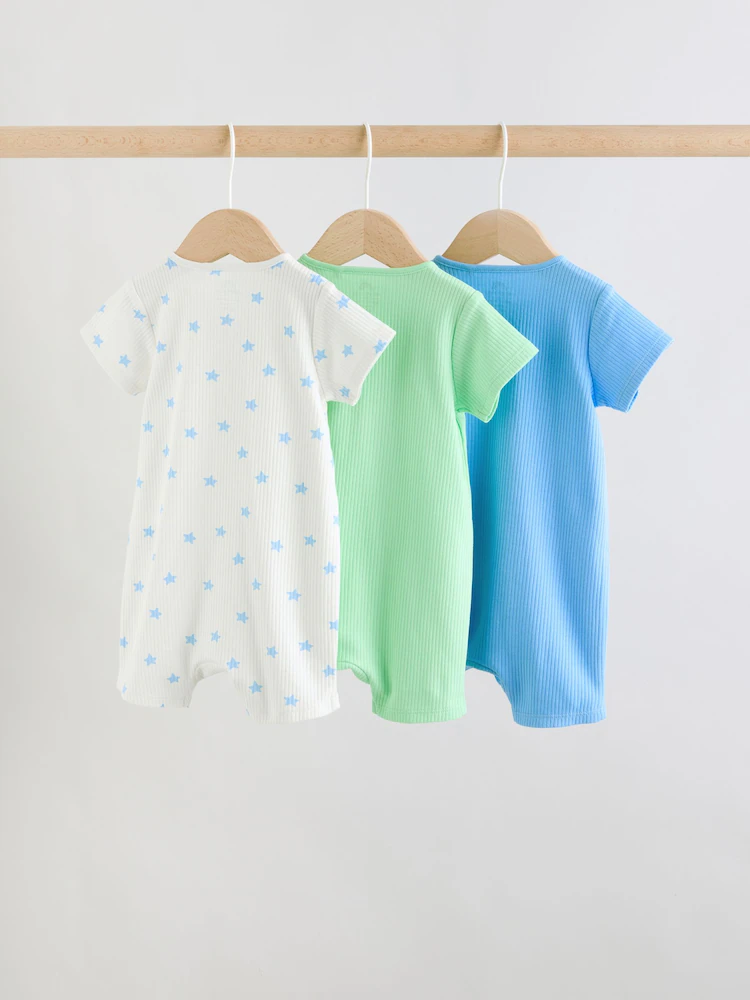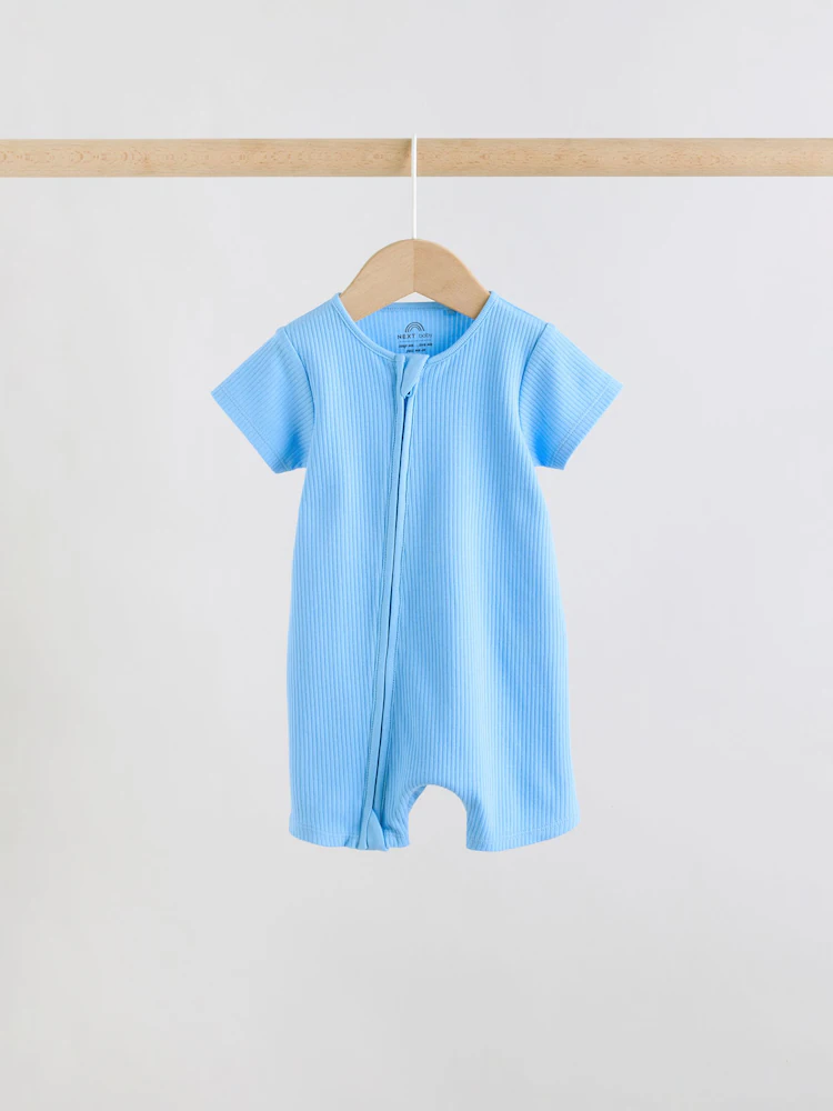 Blue Two Way Zip Baby Rompers 3 Pack (0mths-3yrs)