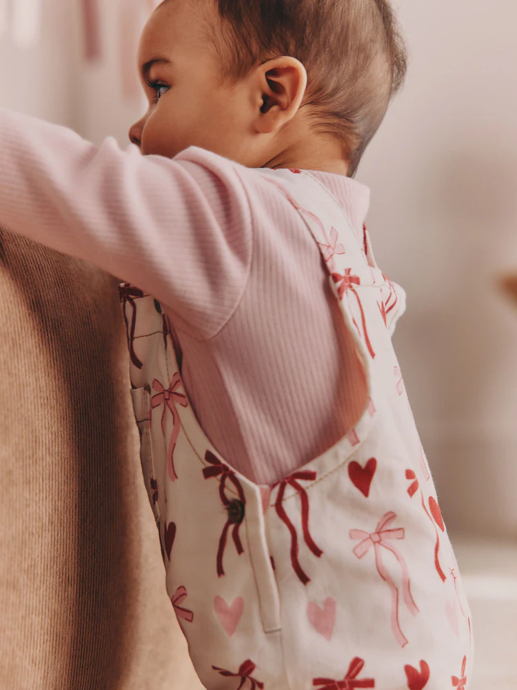 Cream/Pink Bows Baby Dungarees and Bodysuit Set 2 Piece (0mths-3yrs)