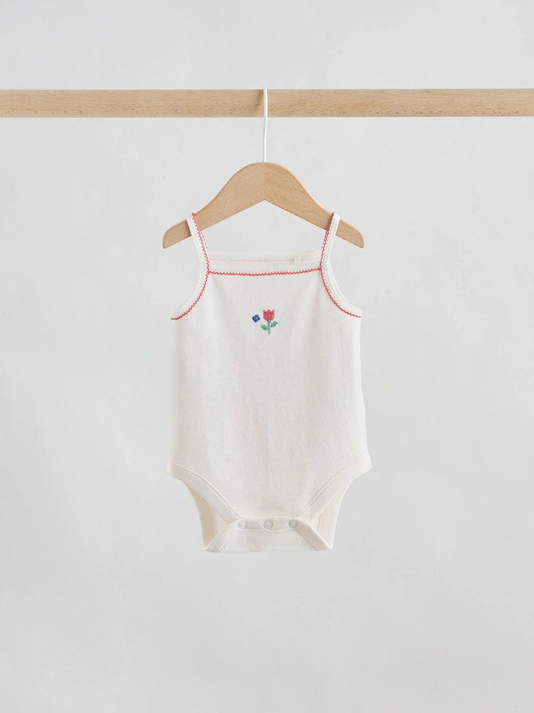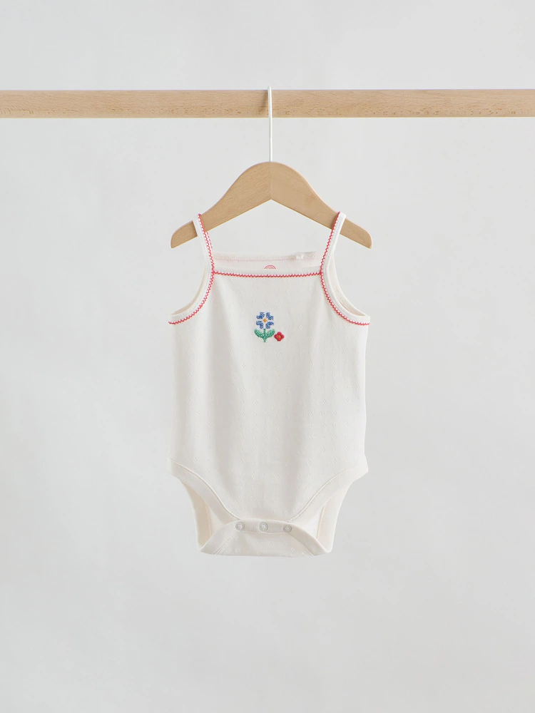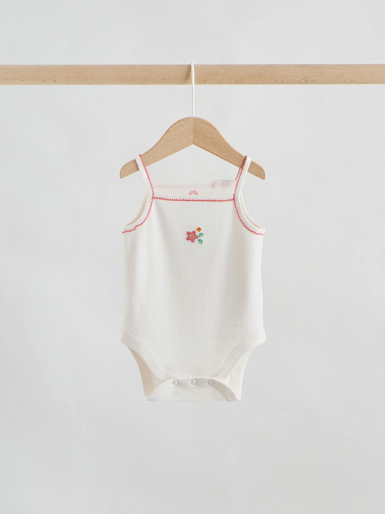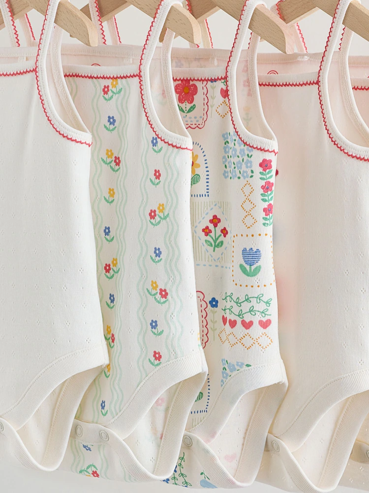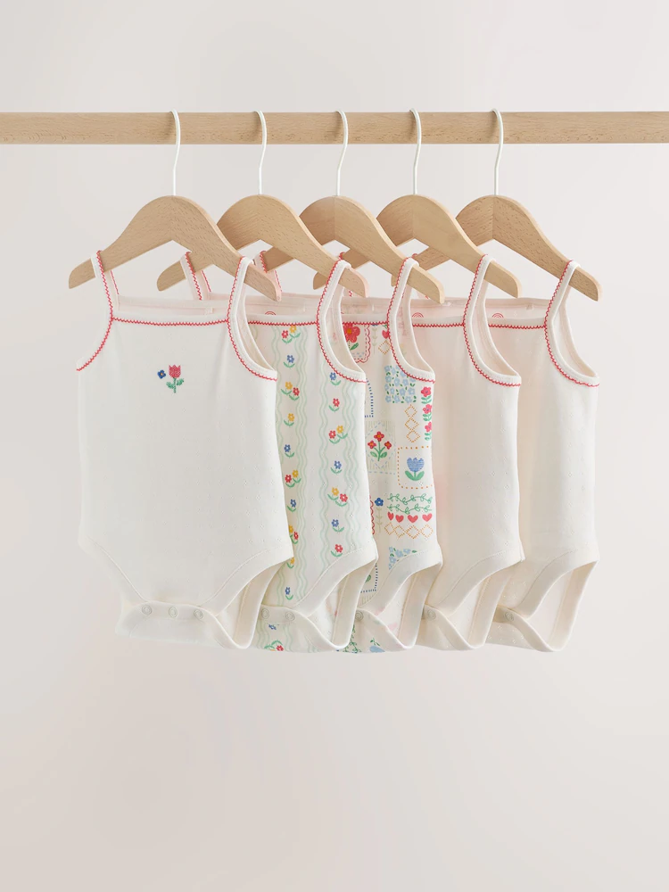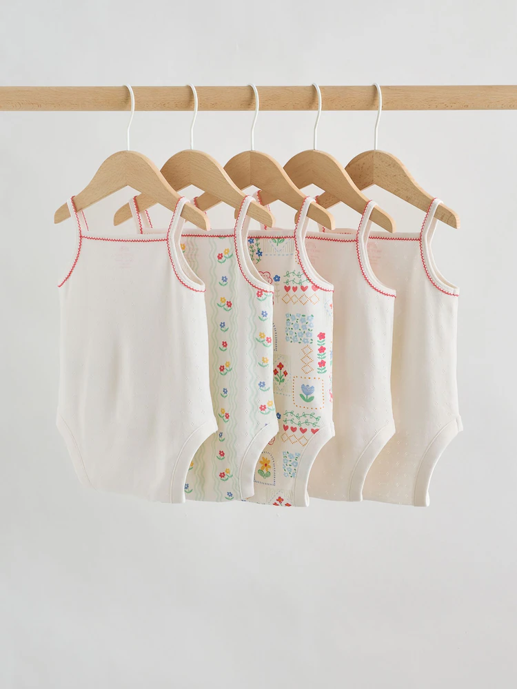 This five-pack of cotton vest bodysuits provides a soft and breathable choice for everyday layering and warm-weather styling. The super soft fabric ensures a gentle feel against delicate skin, while the sleeveless vest design allows for easy movement. Practical popper fastenings at the base provide a simple solution for quick and convenient changes throughout the day.