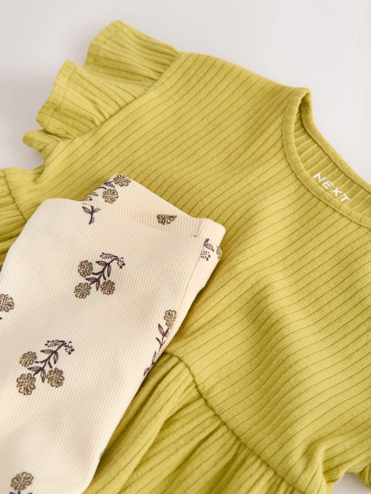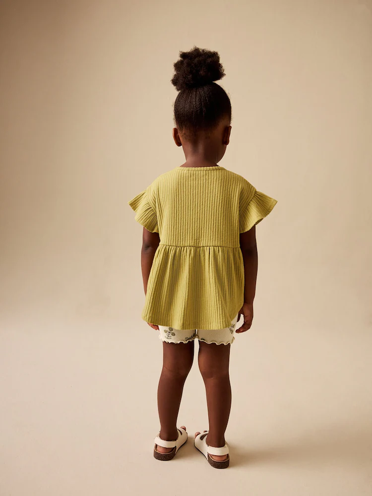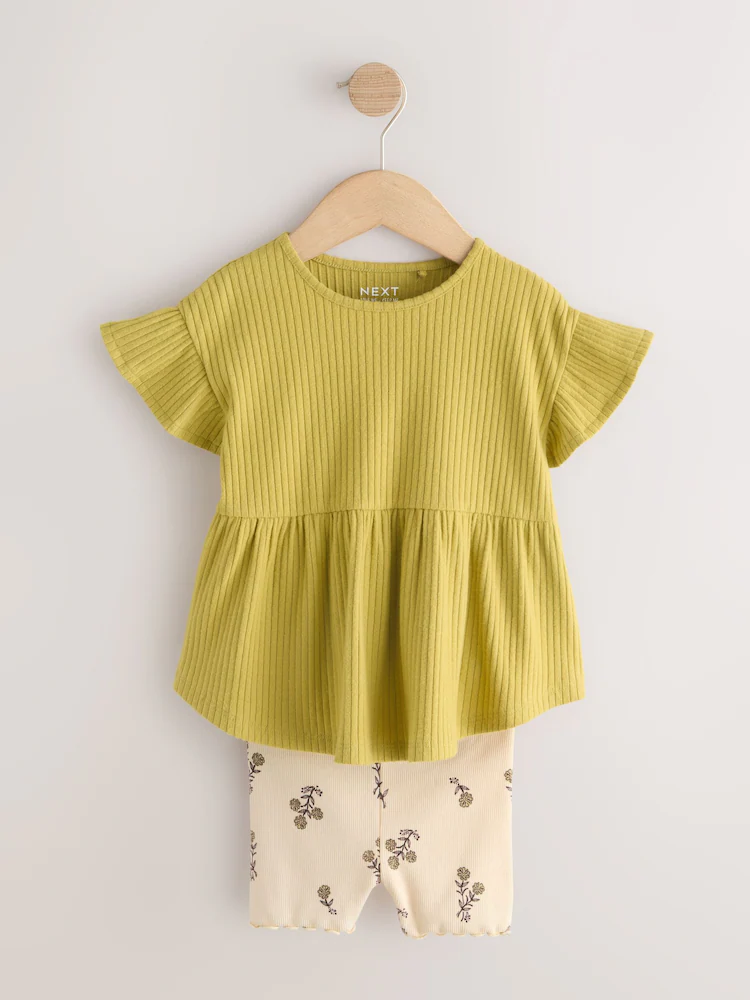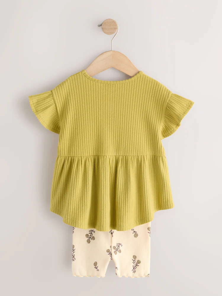 Green Ditsy Floral Ribbed Top and Cycle Shorts Set (3mths-7yrs)