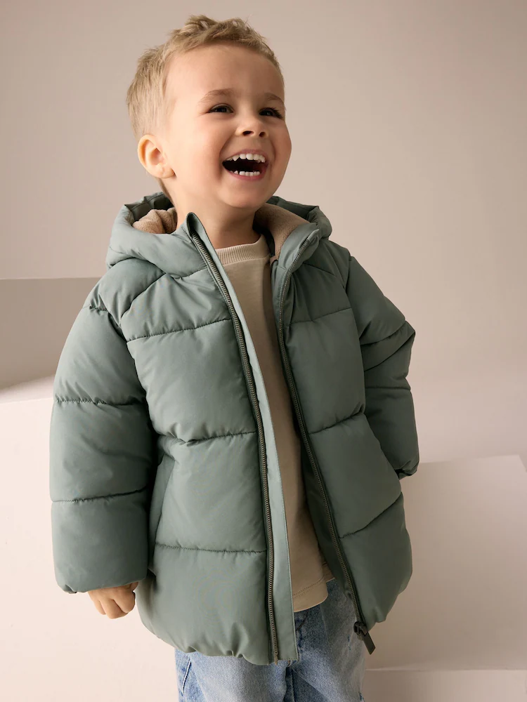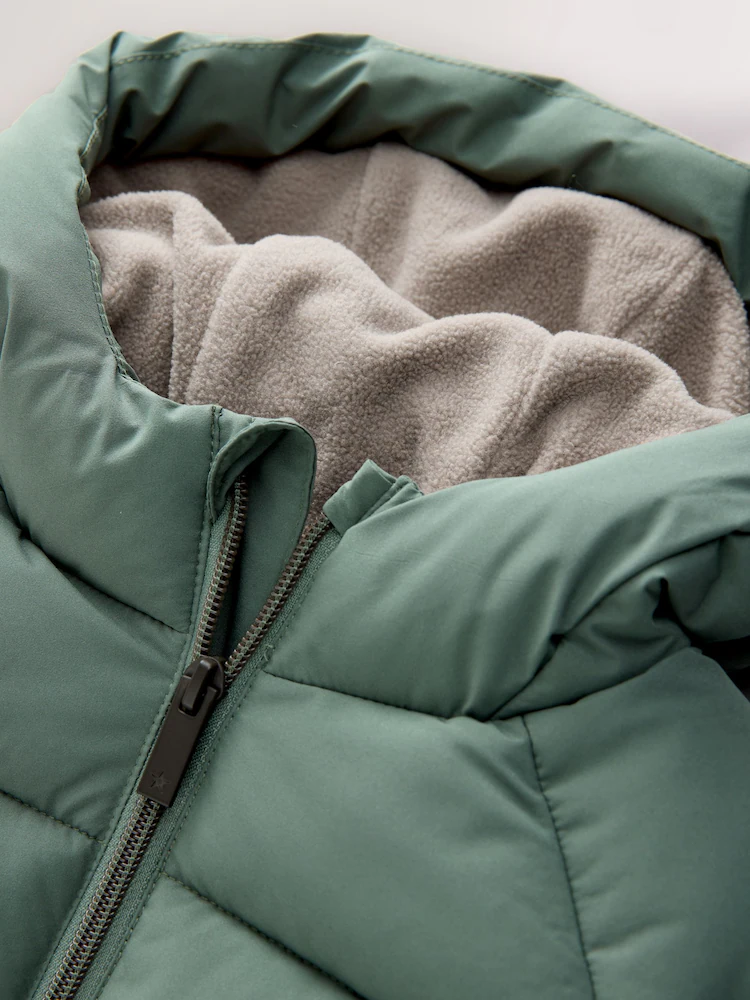 Keep them warm and dry on their outdoor adventures in this green padded coat. The shower-resistant fabric and wadded design provide extra warmth, while the cosy fleece lining ensures comfort on cooler days. With a hood, zip fastening, and side pockets, it’s a practical and stylish choice for their everyday wear.