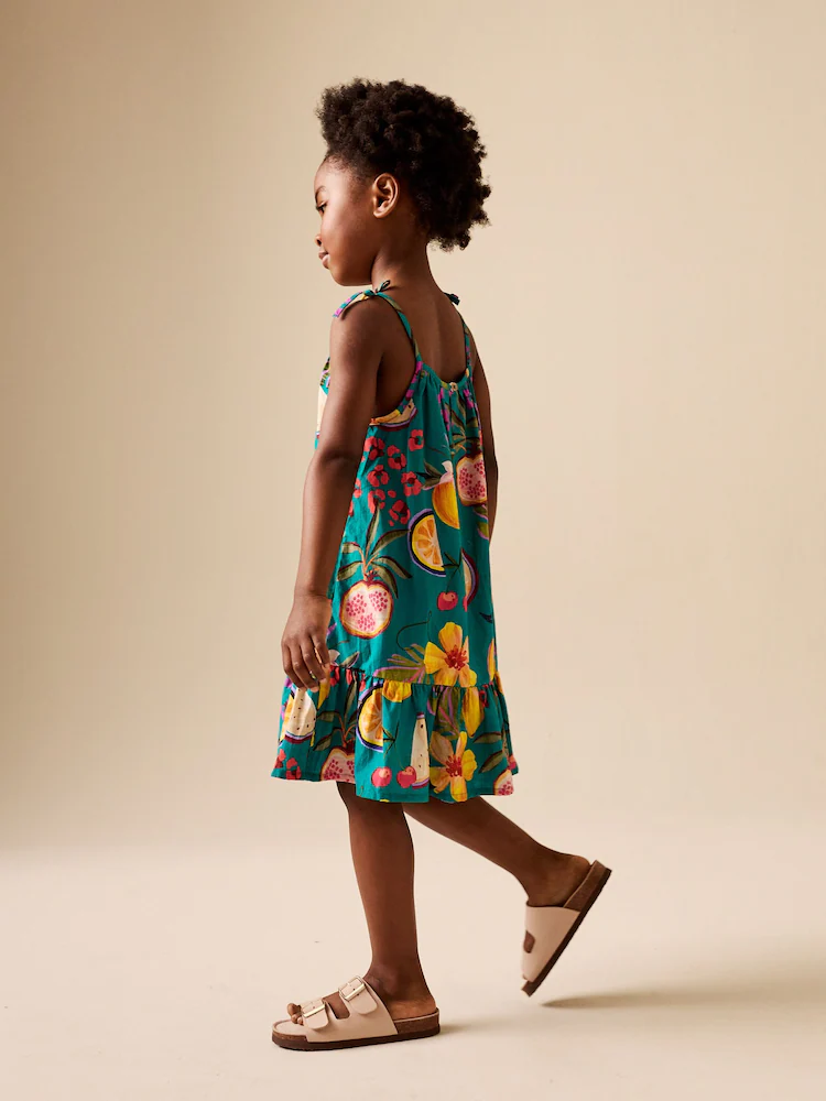 Green Tropical Angel Sleeve Dress (3-16yrs)