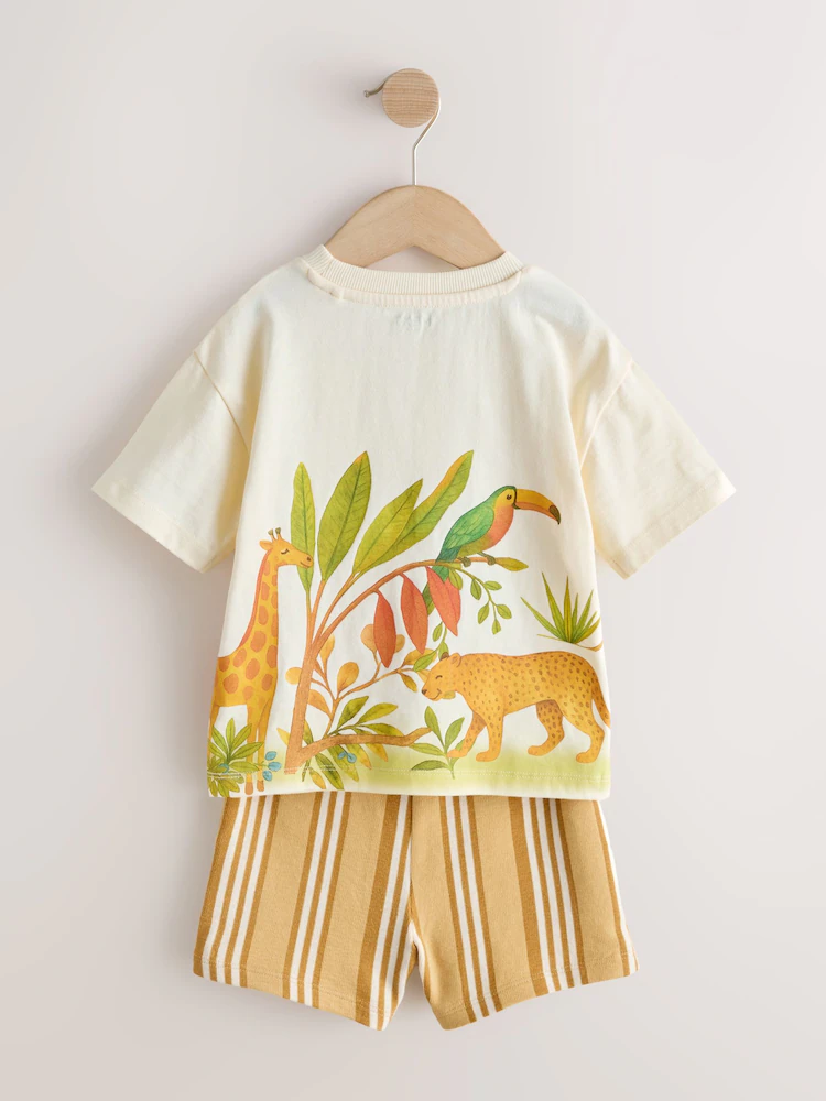 Light Yellow Watercolour Safari Short Sleeve Back Print T-Shirt and Shorts (3mths-7yrs)