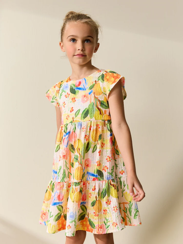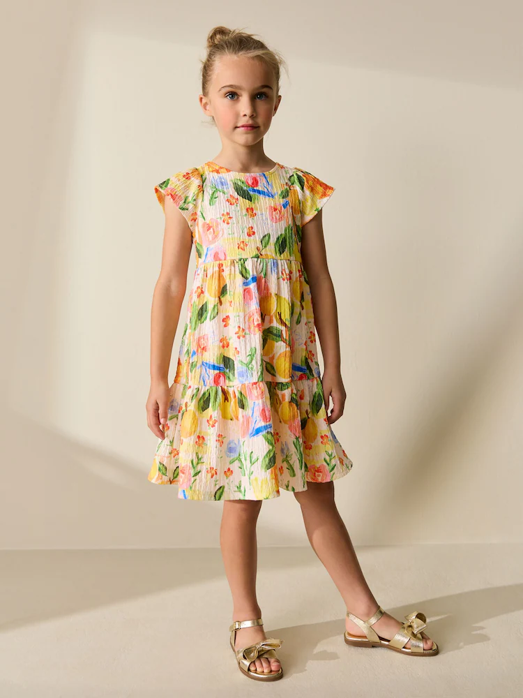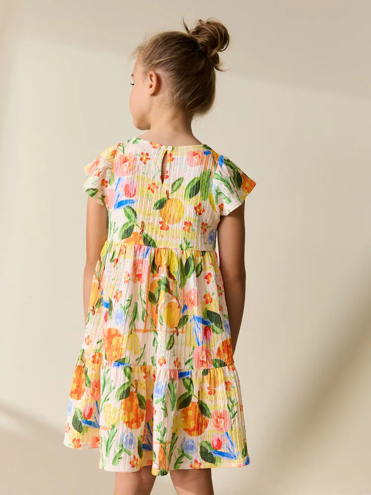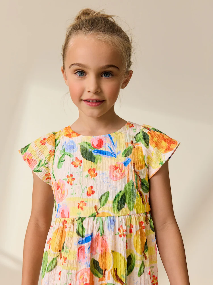 Multi Tropical Angel Sleeve Crinkle Dress (3-16yrs)
