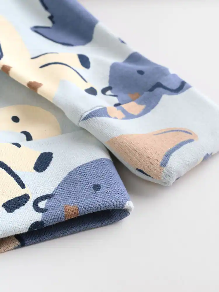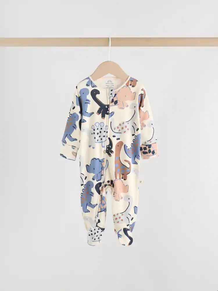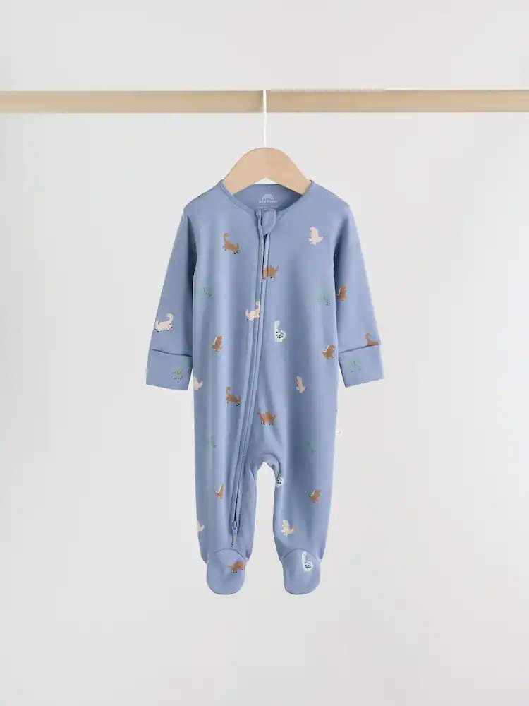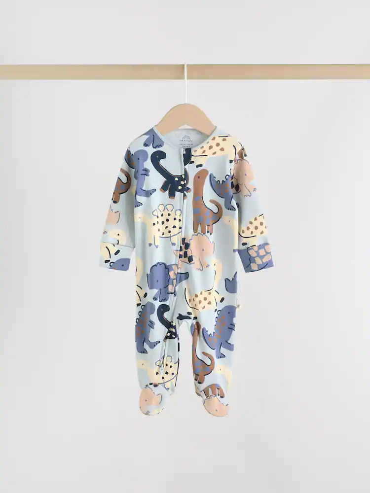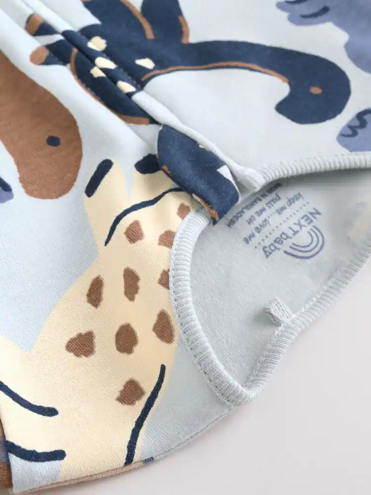 Perfect for their bedtime routine, this 4 pack of navy baby sleepsuits is a comfortable and practical choice. The super soft cotton fabric is gentle on their skin, while the two-way zip fastening makes nappy changes and dressing a breeze. The pack includes a mix of fun designs, including a plain, two-tone, and all-over printed options, all finished with inner lined feet and anti-slip sole print from 9-12 months.