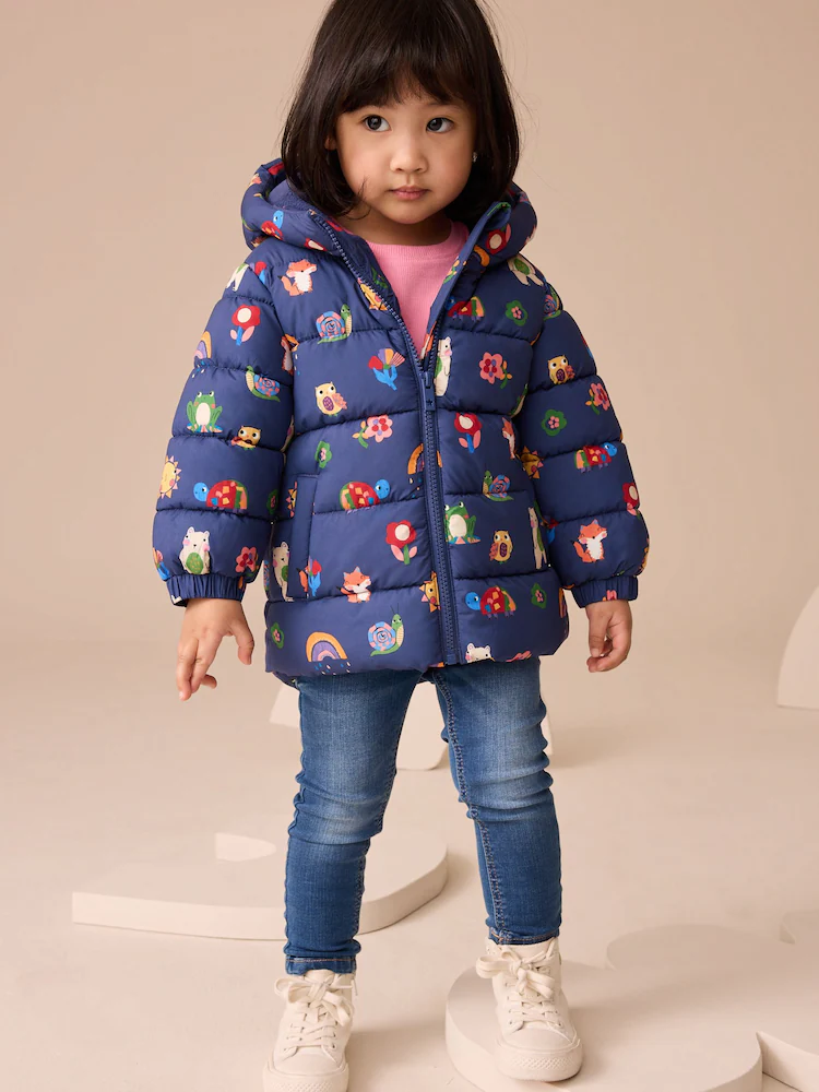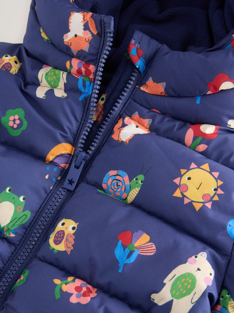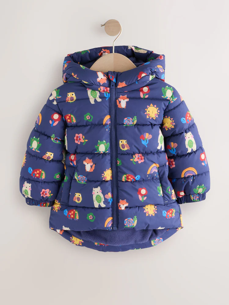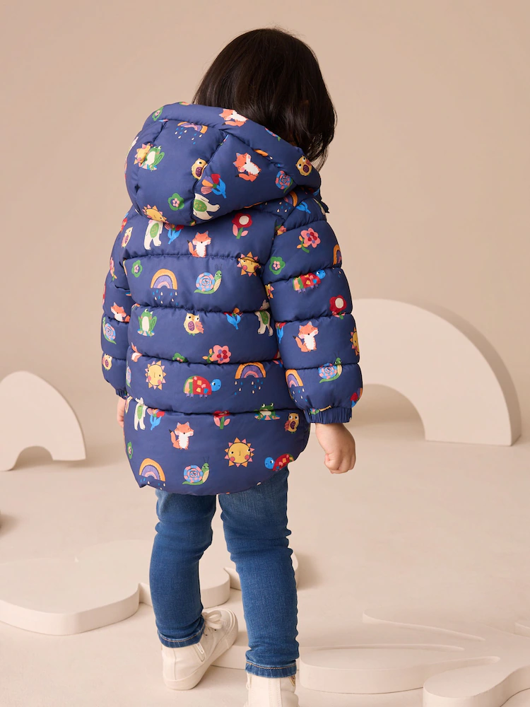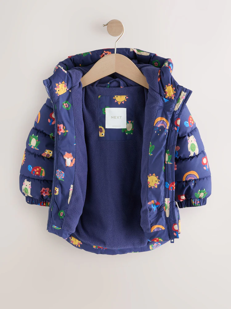 Navy Character Shower Resistant Fleece Lined Hooded Padded Coat (3mths-7yrs)