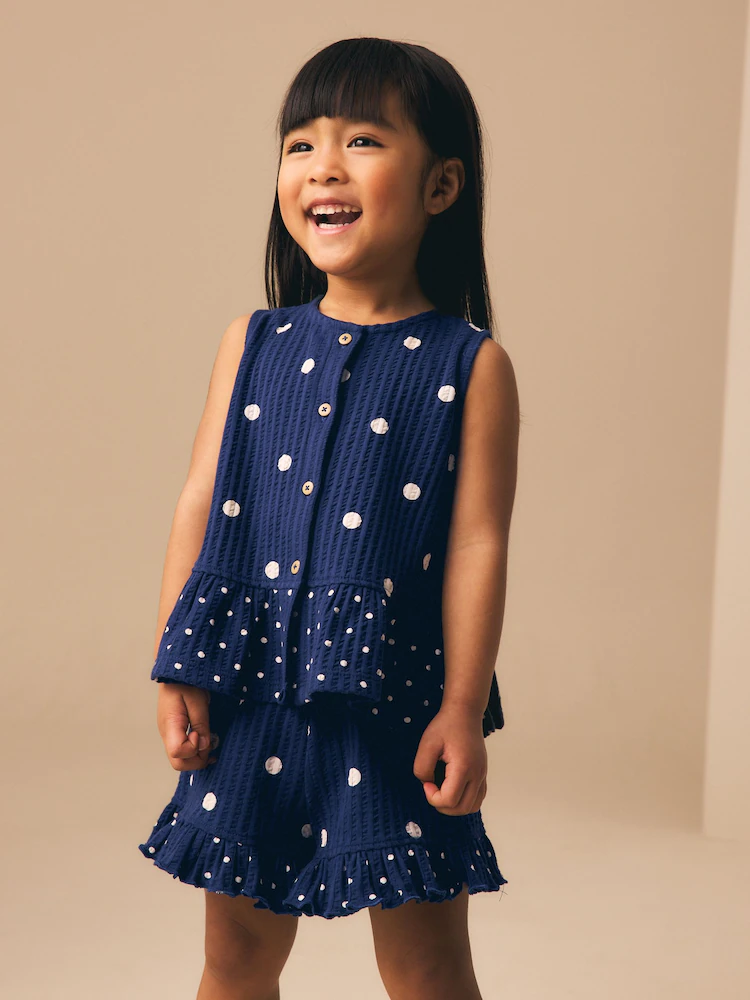 Navy Spot Peplum Vest and Shorts Set (3mths-7yrs)