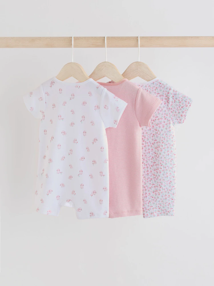 A sweet addition to their warm-weather wardrobe, our 3 pack of rompers are made from super-soft cotton with a two way zip fastening for easy dressing. In three pretty pink designs, no harmful chemicals or dyes are used to protect their delicate skin.