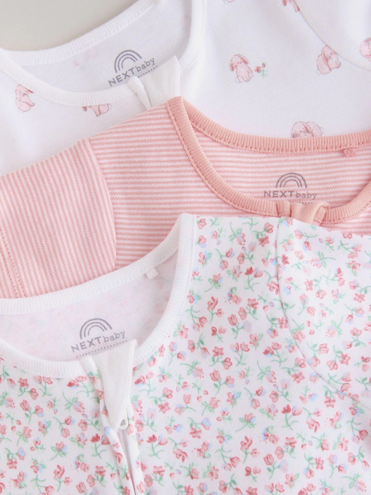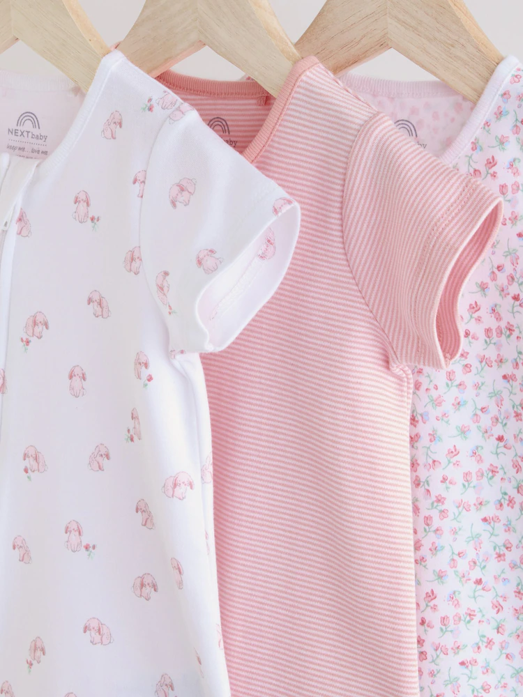 Pink 3 Pack Two Way Zip Baby Rompers (0mths-3yrs) Immediate