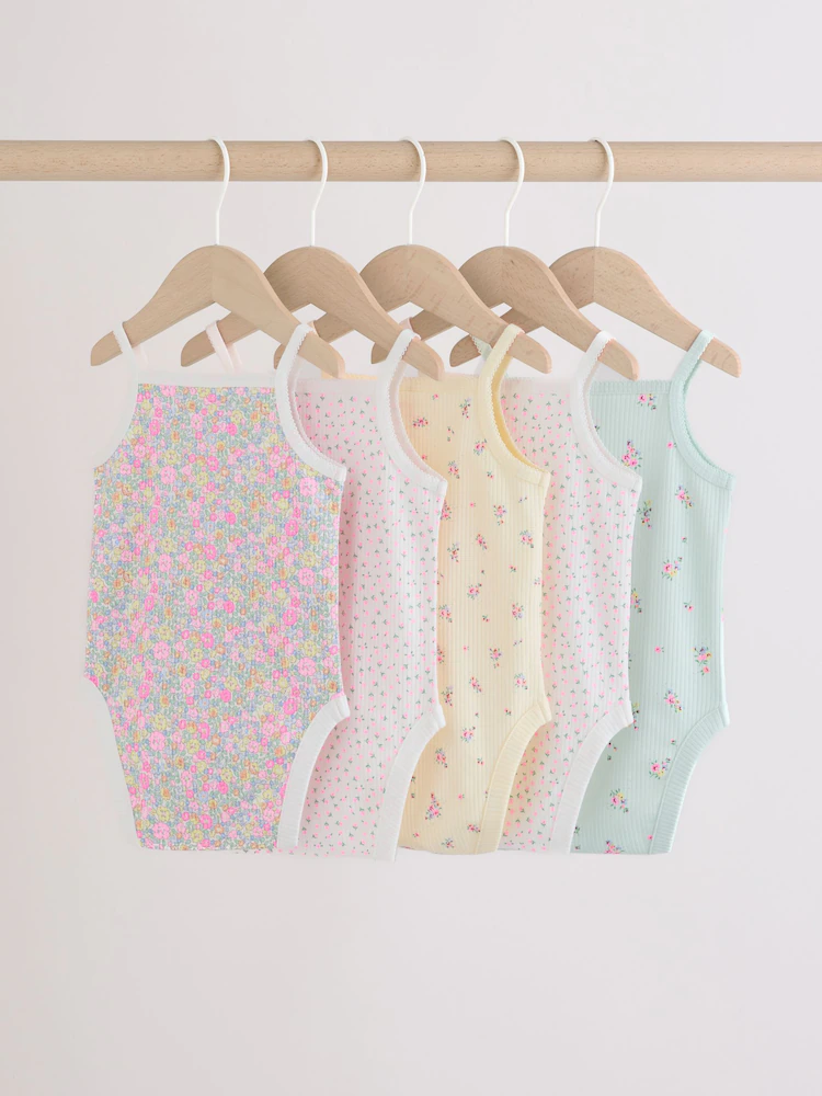 Brighten up your nursery essentials with this five-pack of sleeveless bodysuits. They are made from super soft cotton for ultimate comfort against delicate skin. These versatile basics are finished with practical popper fastenings, they make layering easy and changes easy throughout the day.