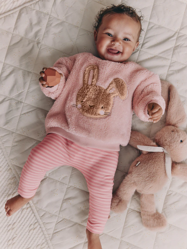 Pink Bunny Baby Fleece Tops and Leggings Set 2 Piece (0mths-2yrs)