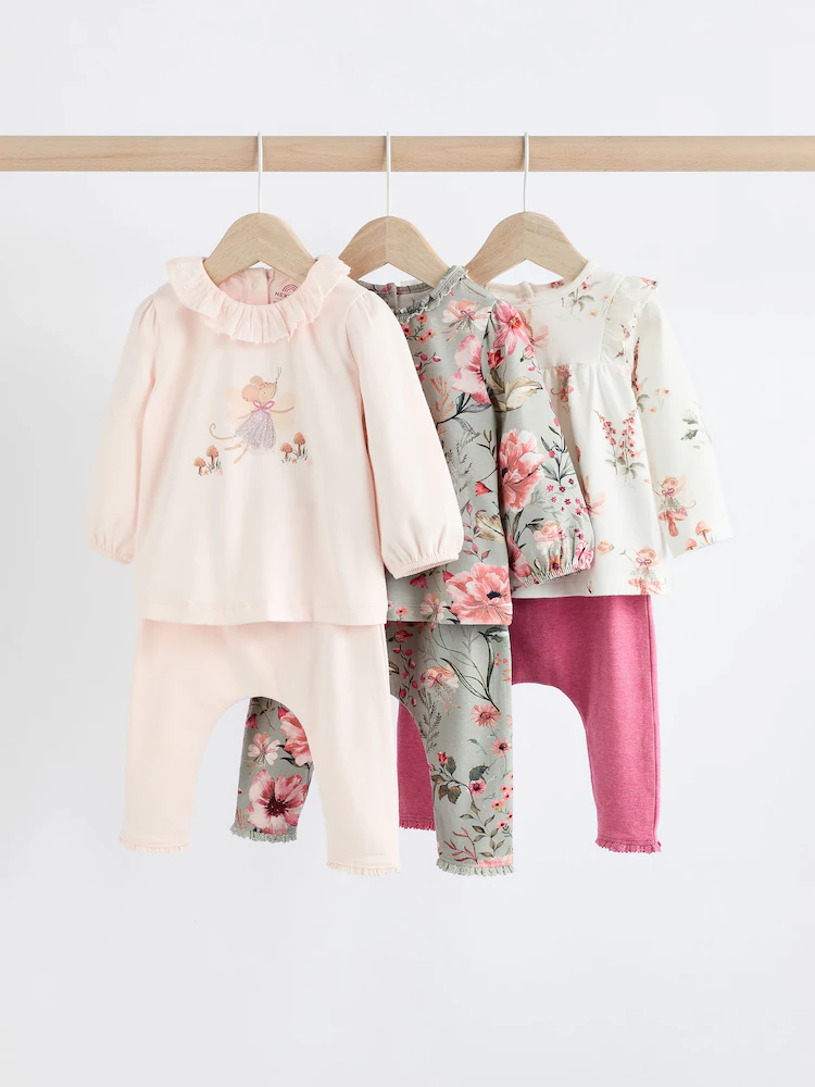 Pink/Green/White Floral Fairy Long Sleeve Top And Leggings Set 6 Piece (0mths-2yrs)
