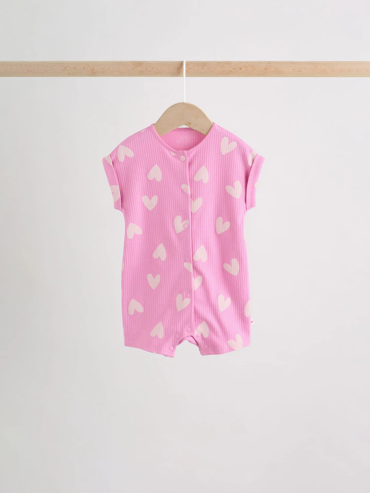 Pink Tonal Heart Popper Through Jersey Baby Rompers 4 Pack