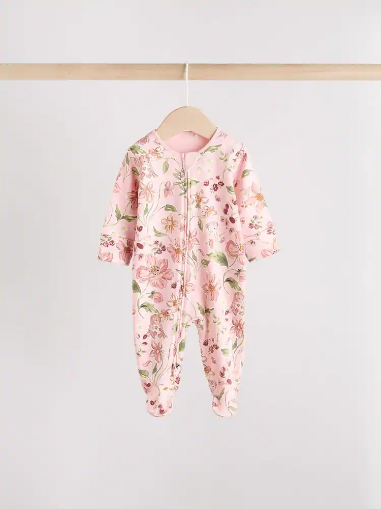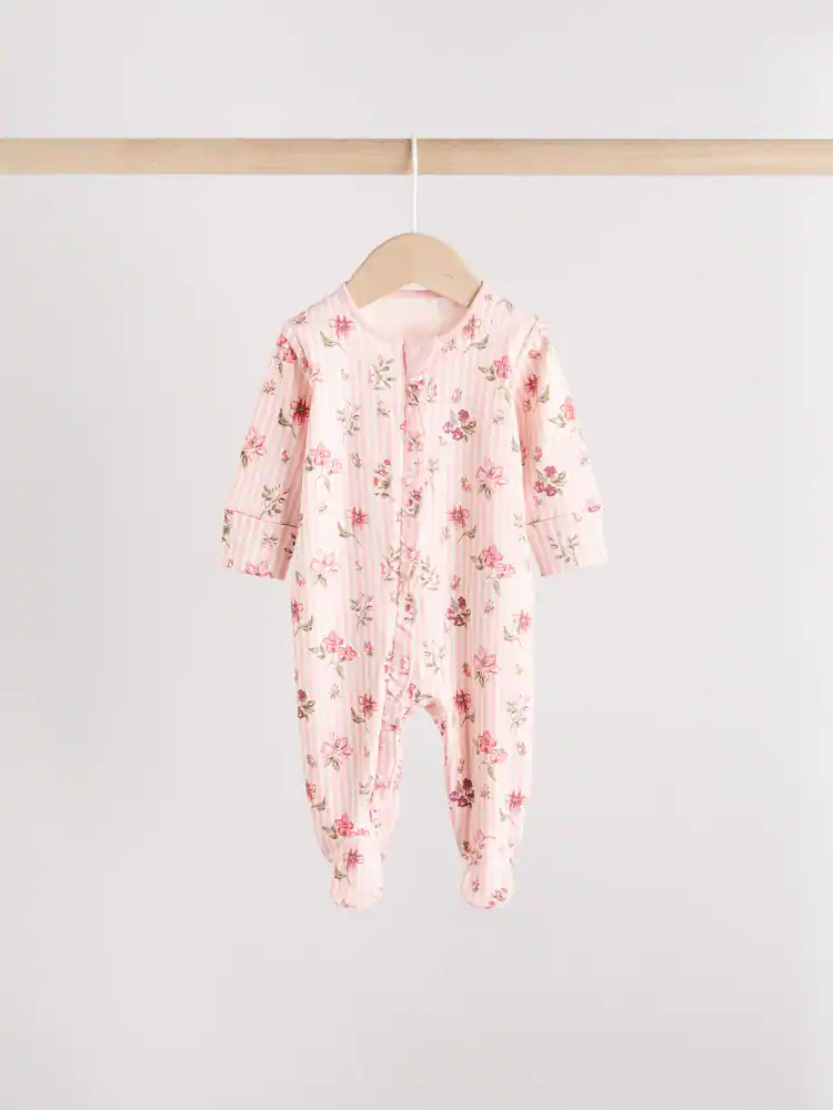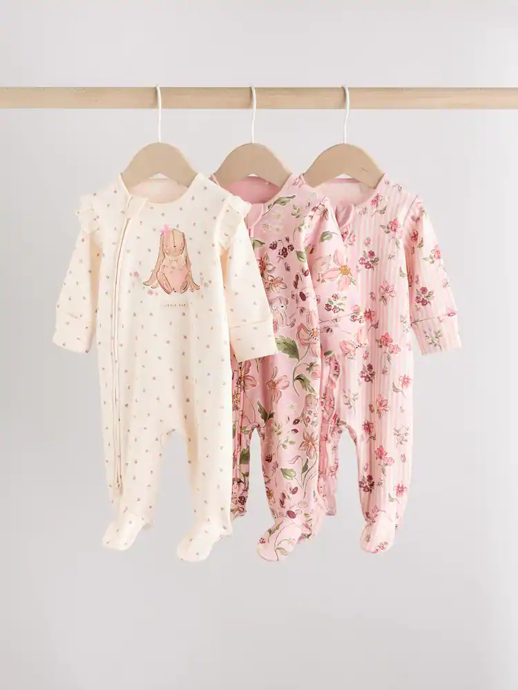 Pink Two Way Zip Sleepsuits 3 Pack (0-2yrs)