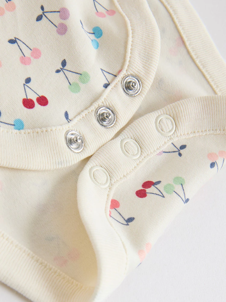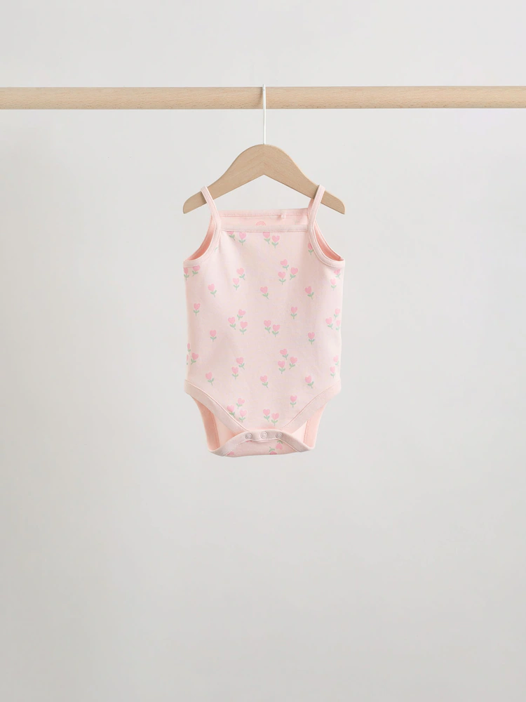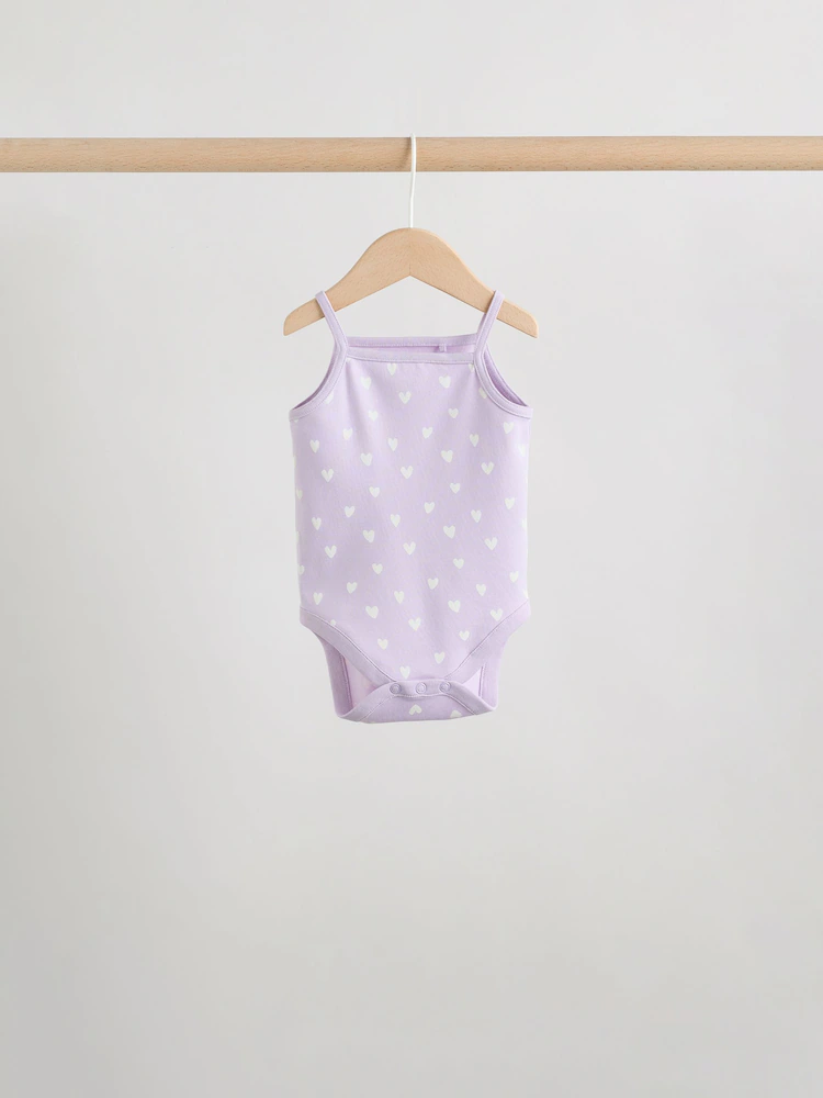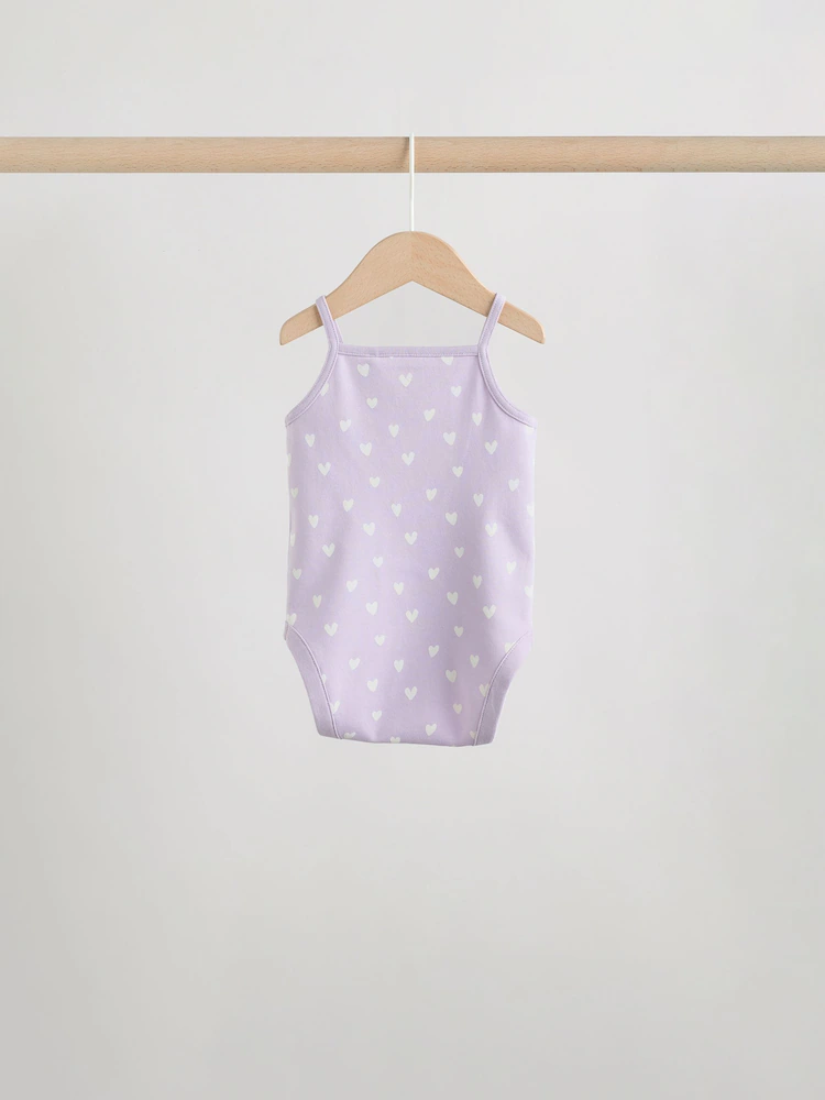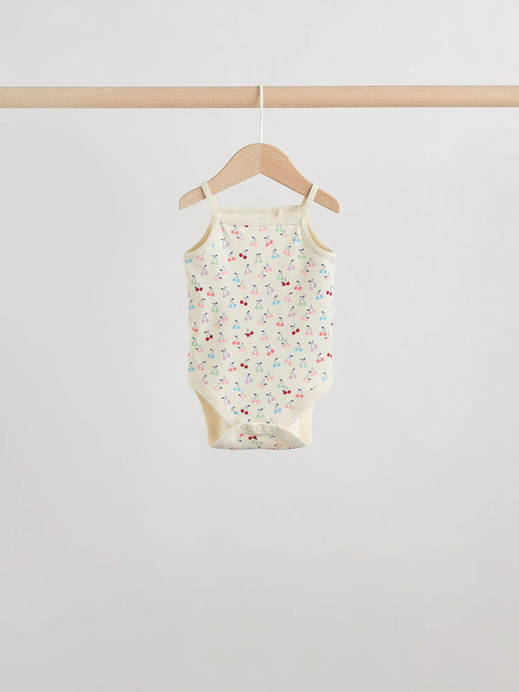 This five-pack of assorted pastel baby vests features a variety of charming prints, including hearts, cherries, and floral patterns in soft pastel shades. Crafted from super soft cotton, these bodysuits are designed for ultimate comfort and easy daily wear.