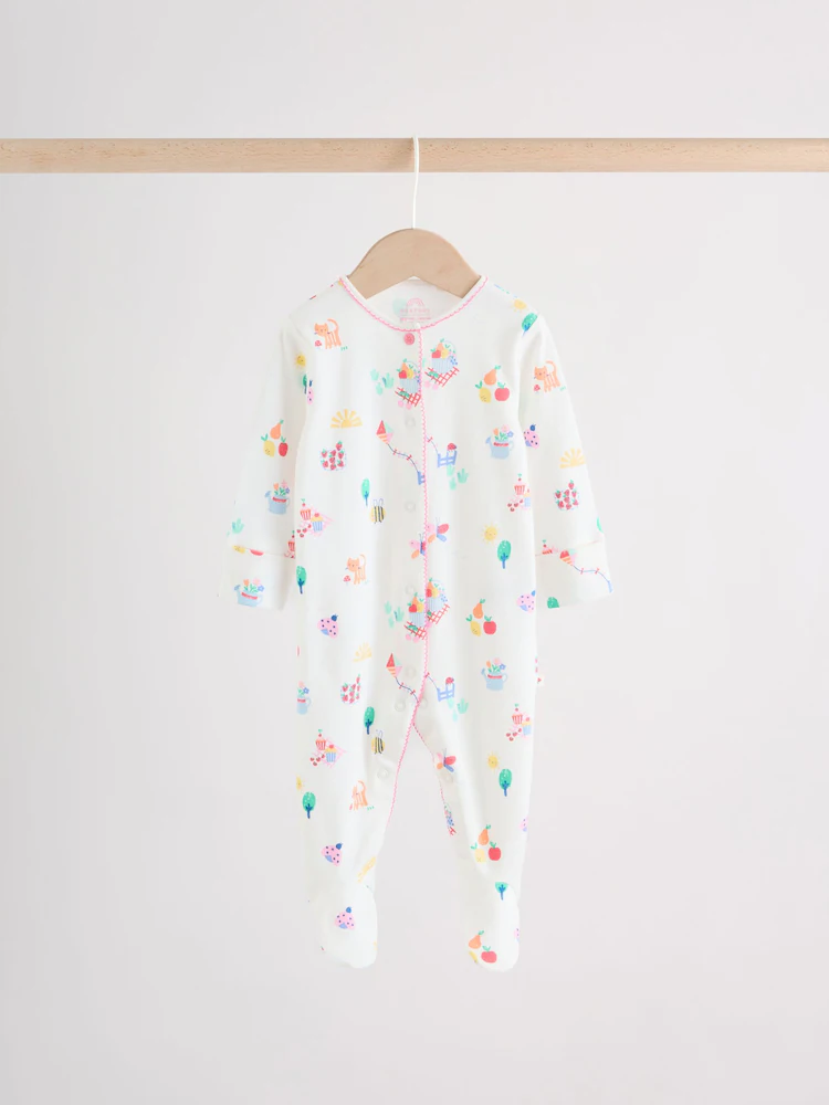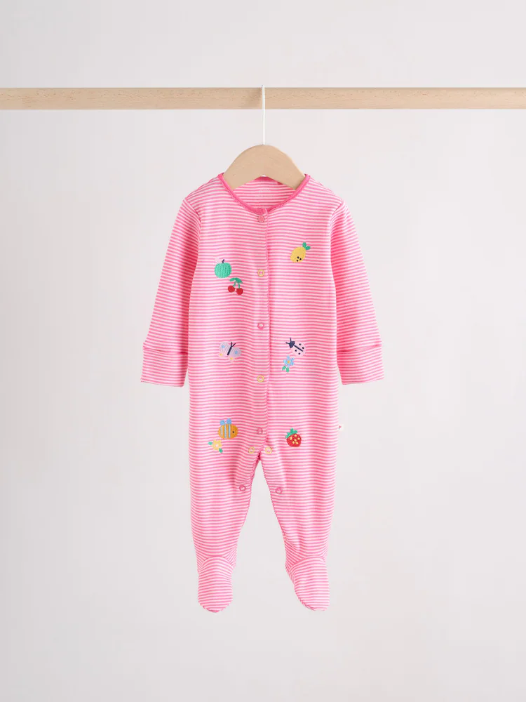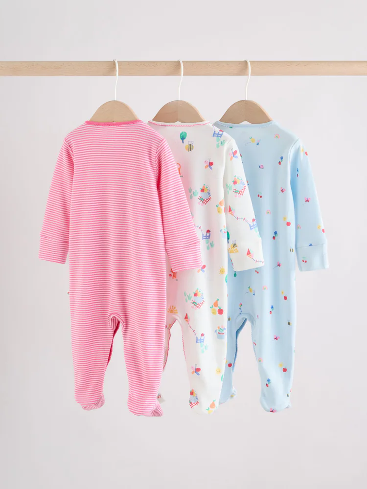 Pink/White/Blue Fruit Baby Sleepsuits 3 Pack (0mths-2yrs)