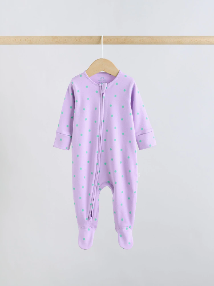 Purple/Orange Two Way Zip Baby Sleepsuit 5 Pack (0-2yrs)