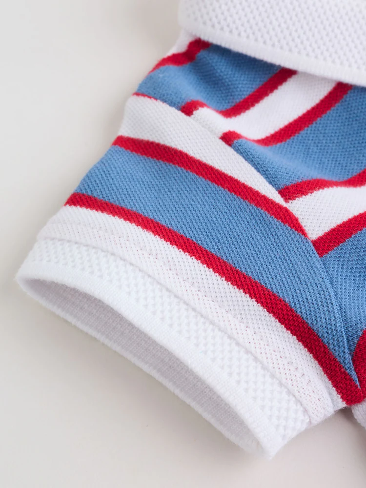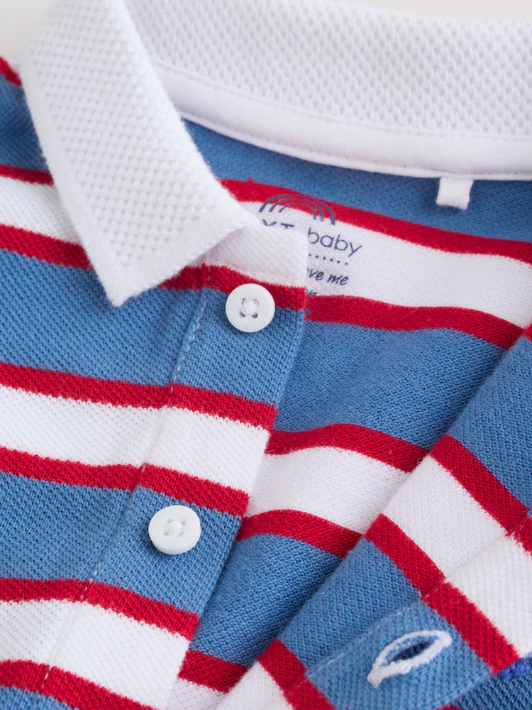 Red/Blue Rugby Striped Smart Collar Baby Rompers 2 Pack