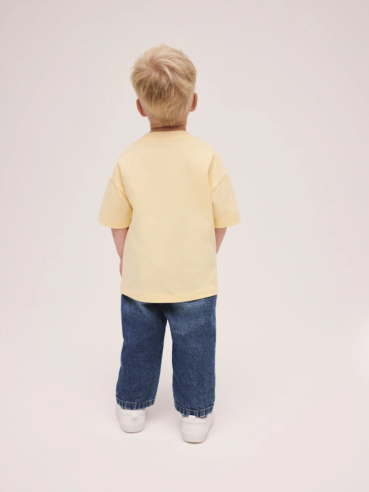 Brighten his day with this comfortable Yellow short-sleeved t-shirt. The soft cotton fabric and classic crew neck are elevated by a small, playful Mama’s Bestie graphic featuring puff print detail on the chest, adding a fun, textured touch to his everyday look. It’s a perfect staple for casual adventures.